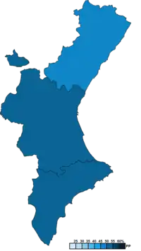 ![]() Constituency results map for the Corts Valencianes | |||||||||||||||||||||||||||||||||||||||||||||
