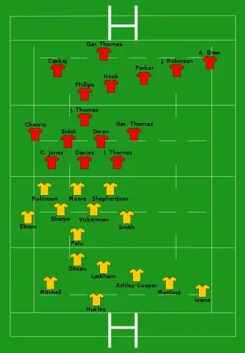 | Try: Palu Sharpe Giteau Hoiles Con: Mortlock (3) Pen: Mortlock | Report | Try: Gareth Thomas Robinson Con: Hook (2) Pen: Hook (2) Drop: Hook |