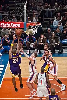 The 2008–09 Los Angeles Lakers season was the franchise's 61st season, 60th in the National Basketball Association (NBA) and 49th in Los Angeles. Coming off an appearance in the 2008 NBA Finals, the Lakers won their division for the 31st time and appeared in the NBA Finals for the 30th time.[1] With 65 wins, they tied the 1986–87 team for the third most wins in franchise history, the most since 1999–2000, and improved on their 2007–08 record by eight wins.[2] The Lakers sold out all 41 home games for the season, led the NBA in money earned from overall ticket sales, and had the 5th highest increase in gate receipts from the previous season.[3] The Lakers had the third best team offensive rating in the NBA.[4]