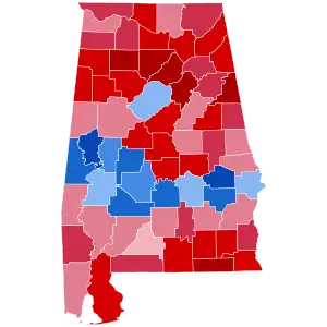 Voting in Alabama, like in other states of the Deep South, was heavily polarized by race. According to exit polls, 98% of black Alabamians voted Democratic while 88% of white Alabamians voted Republican.[19] Obama's 12 percent showing among white Alabamians was easily his worst in the nation, and prevented him from having any realistic chance of carrying the state.[20] Ultimately, McCain won by running up massive landslides in the state's suburban areas; several Birmingham, Montgomery and Mobile suburbs gave McCain over 70 percent of the vote. The old-line Dixiecrats in these areas began splitting their tickets as early as the 1940s; apart from Carter, some of these areas haven't supported a Democrat for president since Adlai Stevenson II in 1952.