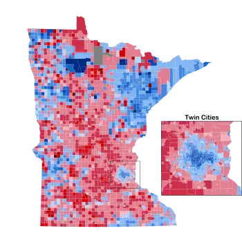 On Election Day, Obama won Minnesota by a comfortable margin, piling up 2-1 margins in Hennepin County (Minneapolis) and Ramsey County (St. Paul). Obama also ran evenly in the Minneapolis suburbs and rural Minnesota. However, McCain mostly held the same counties Bush won in the Republican base of central Minnesota.[19] While Obama still won the state with ease, GOP efforts and the Republican National Convention led to a better Republican performance than seen in neighboring states in the Upper Midwest, and prevented the collapse of Republican support that occurred in neighboring Michigan and Wisconsin.