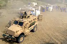 • On August 18, 2009, two days before the vote, rocket attacks or mortar rounds struck near the presidential palace in Kabul, and a suicide car bomb attack on a NATO convoy heading to a British military base killed nine people and wounded around 50. One NATO soldier was killed and two others wounded. Two UN staff members were killed, and a third was wounded. About 12 vehicles were destroyed and several surrounding buildings were damaged by the blast. A suicide bomb attack at the gates of an Afghan army base in the province of Uruzgan also killed three Afghan soldiers and two civilians.[83][85][93]
