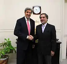 Presidential elections were held in Afghanistan on 20 August 2009.[1] The election resulted in victory for incumbent Hamid Karzai, who received 49.67% of the vote, while his main rival Abdullah Abdullah finished second with 30.59% of the vote.