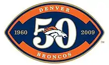 - 1 2 These two games were among the 16 that the NFL designated as "AFL Legacy Games," in honor of the 50th anniversary of the AFL. The Broncos wore their throwback uniforms during those two games, as did the Patriots and Chargers. The Broncos wore the yellow jerseys (with brown numerals) against the Patriots, and the white jerseys (with brown numerals) at the Chargers.[6]