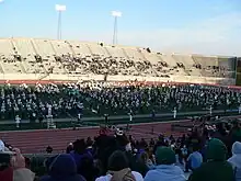 The special "Band Day" halftime show featured the EMU Marching Band along with 12 high school bands.