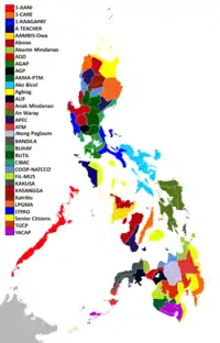 In the party-list election, Ako Bicol Political Party topped the election getting 5% of the national vote and won three seats, but their proclamation was delayed as a disqualification case against them was brought up; their first three nominees were subsequently seated with the dismissal of the case.[2] As much as 43 other parties qualified to win seats, and all but two were yet to be seated due to pending disqualification cases.