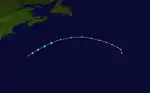 On July 17, an area of showers and thunderstorms, associated with the same frontal system that spawned Tropical Storm Bret, consolidated around a developing area of low pressure about 345 mi (555 km) west-southwest of Bermuda. Tracking east-northeastward, the system gradually organized and became better defined. The disturbance produced moderate rains while passing south of the territory, peaking at 1.16 in (29 mm); gusty winds were also observed. At 06:00 UTC on July 20, the low developed into a tropical depression east of Bermuda. Embedded within the mid-latitude westerlies, the depression moved northeast and maintained this general direction for the remainder of its existence.[40]