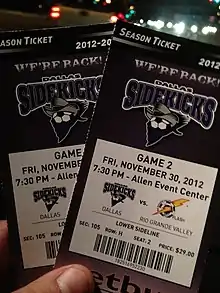 - 1 2 3 Betsill, Jay (January 14, 2013). "Checking out the Dallas Sidekicks game". Fort Worth Star-Telegram. Retrieved January 16, 2013.