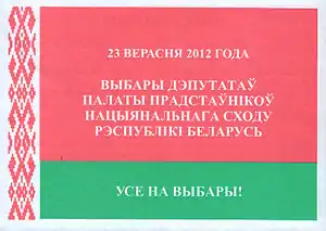 Parliamentary elections were held in Belarus on 23 September 2012.[1] At stake were the 110 seats in the House of Representatives, the lower house of the National Assembly of Belarus.