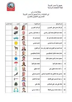 - ↑ "من هو الرئيس القادم؟.. أول استطلاع للرأي العام بعد إعلان قائمة المرشحين". المصري اليوم.