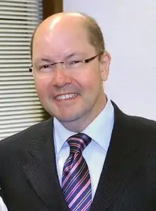 On 6 October 2008, then mayor and former governor Iris Rezende, of the Brazilian Democratic Movement Party (Partido do Movimento Democrático Brasileiro – PMDB) was re-elected with 74% of the valid votes.[7] His approval rating was of 81% at the time and he became the first mayor of Goiânia to be re-elected.[7] On 1 April 2010, Rezende resigned from the office in order to run for governor at the 2010 elections.[8] Deputy-mayor Paulo Garcia, of the Workers' Party (Partido dos Trabalhadores – PT), a party opposed to irismo until they reconciled to form Rezende's electoral coalition in 2008[7] took office.[8] Rezende lost the gubernatorial race to former governor and then-senator Marconi Perillo, of the Brazilian Social Democracy Party (Partido da Social Democracia Brasileira – PSDB), elected on the second round with 53% of the valid votes.[9]