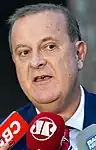 Shortly before the definition of candidates for mayor, on 29 February 2012, criminal offender Carlinhos Cachoeira, which profited between 1 and 3 million reais (around 0.5 to 1.5 million dollars) per month[10] through the illegal jogo do bicho was arrested in Goiânia as a result of the Monte Carlo Operation, led by the Federal Police (Polícia Federal – PF).[11] Wiretaps revealed close ties between Cachoeira and then-Senator Demóstenes Torres, from the Democrats (Democratas – DEM).[12] Torres lobbied in Cachoeira's behalf at the National Congress.[13] In order to avoid an expulsion from his party, Torres asked to be disaffiliated from DEM.[14] Before the outbreak of the scandal, he was the favorite candidate of the population of Goiânia for mayor, with 43.4% of the voting intention.[15] Two weeks prior to the Monte Carlo Operation, Torres announced that he would not run in order not to undermine the opposition to Dilma Rousseff's administration in the Congress.[16] Torres later became the second member in the history of the Senate to be impeached, becoming ineligible until 2027.[17] Another pre-candidate harmed by his relationship with Cachoeira was alderman Elias Vaz, from the far-left Socialism and Liberty Party (Partido Socialismo e Liberdade – PSOL), which had between 14% and 18% of the voting intention.[18] In one of the wiretaps, he calls Cachoeira "my comrade".[19] In late June, Vaz announced that he would not run for mayor in order to try to keep his seat at the Municipal Chamber.[20]