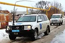 The European Union Monitoring Mission in Georgia patrols the South Ossetian administration boundary line in February 2012.