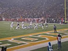 In a clash of top 25 teams, the Baylor Bears and the Texas Longhorns faced off in the final game in the 64-season history of Floyd Casey Stadium. As both teams entered the game having only lost in conference play to Oklahoma State, the winner of the matchup was assured at least a share of the Big 12 championship. Shortly before kickoff, the announcement of the Oklahoma Sooners' 33–24 victory over Oklahoma State elicited cheers from both Baylor and Texas partisans, as Oklahoma's victory elevated the Baylor–Texas matchup to the de facto Big 12 championship game.