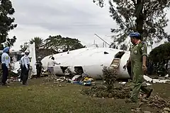 ![]() MONUSCO troops guarding the crash site in Goma | |