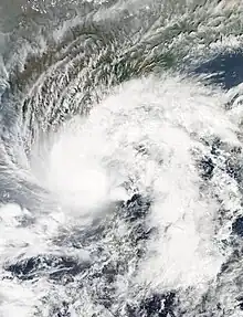 A low-pressure area formed over the Arabian Sea on October 26.[47] It slowly consolidated, prompting the IMD to classify it a depression on October 28.[48] Later the same day, the JTWC issued its Tropical Cyclone Formation Alert (TCFA) for the system, and the IMD upgraded the storm to deep depression intensity.[49][50] Further intensification ensued, causing the IMD to upgrade the system to a cyclonic storm, naming it Chapala.[51] Over the following hours, the storm intensified into a severe cyclonic storm and further into a very severe cyclonic storm.[52][53] Rapid intensification commenced and Chapala was upgraded into an extremely severe cyclonic storm on October 30.[54] On November 3, it made landfall in Yemen as a very severe cyclonic storm, making it the first tropical cyclone at hurricane intensity to make landfall in the country on record.[55] Chapala rapidly weakened over the mountainous terrain of mainland Yemen and was last noted as a low-pressure area the following day.