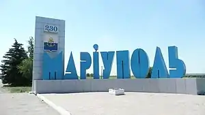 Mariupol entry sign written in Ukrainian
