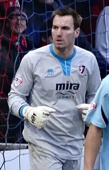 Neil Aspin's first signing of the window was 33-year-old goalkeeper Scott Brown, who had been an ever-present for Wycombe Wanderers when they won promotion out of EFL League Two the previous season.[4] Aspin stated that Brown's experience would help with organising the Vale's young defenders on the pitch.[5] He quickly followed this by bringing in 30-year-old Carlisle United midfielder Luke Joyce on a two-year contract and 24-year-old Alfreton Town winger Brendon Daniels on a six-month contract, describing Joyce as "vastly experienced" and Daniels as "a local lad who is desperate to prove himself".[6] Next to arrive were centre-backs Leon Legge and Connell Rawlinson, arriving on free transfers after leaving Cambridge United and The New Saints respectively.[7] Aspin said that he hoped the experience of Legge would aid the development of young centre-half Nathan Smith.[8] His sixth signing was central midfielder Manny Oyeleke, who had just left National League side Aldershot Town after picking up their Player of the Year award.[9] After a wait of some weeks, the seventh incoming player was revealed to be attacker Louis Dodds, who joined on a season-long loan from relegated Chesterfield; he had previously played for the Vale from 2008 to 2016.[10] Aspin said that Dodds had been keen on a return to Vale Park and "he has cost us next to nothing really".[11] Vale then acquired the services of Peterborough United striker Ricky Miller after paying an undisclosed fee; 29-year-old Miller had scored a remarkable goal tally in the National League but had thus far failed to establish himself in the Football League in a career hindered by legal troubles.[12] Another Peterborough forward then arrived, this time 18-year-old Idris Kanu on a season-long loan, whilst defender Theo Vassell was also signed on a one-year deal from Aspin's former club Gateshead.[13] Going the other way, 20-year-old forward Dan Turner joined Scottish Championship club Falkirk on a six-month loan deal – which was terminated early on 5 October.[14] Taking his place at Vale Park was Scott Quigley, signed on a season-long loan from Blackpool.[15] Aspin also went on to sign former Stevenage midfielder Tom Conlon, who had impressed whilst on trial.[16]