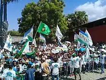 On 26 January the AMP and the Forum of National Democracy (FDN), an alliance (Portuguese: coligação) of several small parties that are not represented in parliament, concluded an agreement to unite the forces of the twelve parties in the upcoming elections. On 1 February 2018, the three parties of the AMP officially decided to work together in the election campaign as well. For this purpose, the alliance was renamed Alliance for Change and Progress.[20] In a declaration of intent, it was agreed to contest the election with a joint list and to form a coalition after the election. Other forces, such as the FDN, would also be free to join the AMP.[12] Fretilin and PD also agreed to cooperate in the election campaign. However, a joint list was ruled out by Alkatiri.[21] With the Frenti Dezenvolvimentu Demokratiku (FDD), the parties Democratic Unity Development Party (PUDD), Frenti-Mudança (FM), Timorese Democratic Union (UDT) and Party of National Development (PDN) founded another alliance on 11 December 2017.