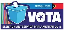 - ↑ "Timor-Leste/Eleições: Seis partidos e quatro coligações no voto antecipado de 12 de maio". Diário de Notícias (in European Portuguese). 22 March 2018. Retrieved 2023-01-06.