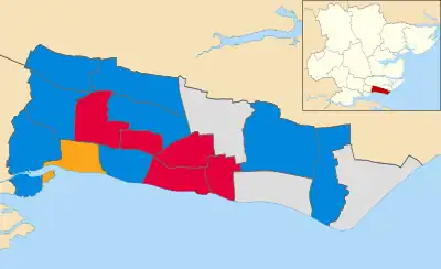 17 out of 51 seats to Southend-on-Sea Borough Council 26 seats needed for a majority | ||||||||||||||||||||||||||||||||||||||||||||||||||||||||||||||||||||||||||||||||||||||||||||||||