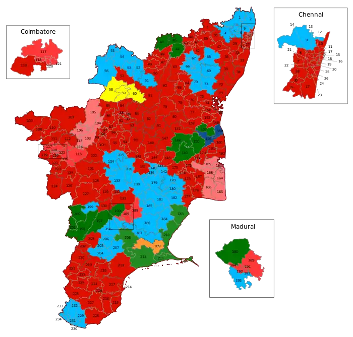 All India Anna Dravida Munnetra Kazhagam[9] National Democratic Alliance 20 39 1 13,307,139