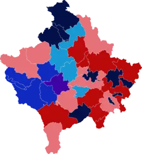 After the election, Vetëvendosje leader Albin Kurti formed a coalition with the LDK. However, the government collapsed on 25 March following a motion of no confidence.[14] Following the vote, the LDK formed a new government with the Alliance for the Future of Kosovo, the Social Democratic Initiative and the Serb List. However, due to the Constitutional Court's ruling and a deputy's conviction, the government collapsed again and another election will be held within 40 days starting from 22 December.[15][16]