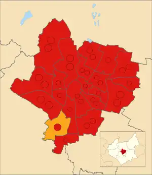 ![]() Winner of each seat at the 2019 Leicester City Council election | |||||||||||||||||||||||||||||||||||||