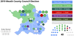 An election to all 40 seats on Meath County Council was held on 24 May 2019 as part of the 2019 Irish local elections. County Meath was divided into 6 local electoral areas (LEAs) to elect councillors for a five-year term of office on the electoral system of proportional representation by means of the single transferable vote (PR-STV).