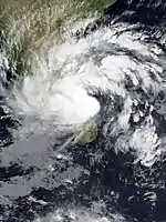 During May 31, an area of low pressure developed over the south-eastern Arabian Sea and remained as a well marked low-pressure area over the same region until the evening. It strengthened into a depression over the east-central and south-east Arabian Sea in the early morning of June 1 when it was centered about 340 km south-west of Goa, 630 km south-southwest of Mumbai and 850 km south-southwest of Gujarat. It gave nearly 400 mm of extremely heavy rain at Kavaratti, Lakshadweep. On June 2, around noon, the prevailing deep depression intensified into a cyclonic storm thereby receiving the name Nisarga. The name has been contributed by Bangladesh. Nisarga intensified into a severe cyclonic storm before making landfall near the coastal town of Alibag in Maharashtra at 12:30 (IST) on June 3. At the time, the system was at peak intensity with 3-minute sustained winds of 110 km/h (70 mph) and a central pressure of 984 hPa (29.06 inHg). The cyclone subsequently weakened into a deep depression by June 4.[16][17]