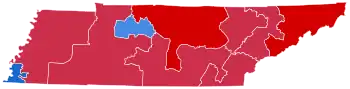 Trump won Tennessee with 60.66% of the vote, almost tied with his 60.72% vote share in 2016. Despite this, Biden got 37.4% of the vote, three points better than Hillary Clinton. Prior to the election, all 17 news organizations considered this a state Trump would win, or a safe red state. The Volunteer State has not supported a Democrat for president since 1996. Biden won the same counties as Clinton did: urban Shelby and Davidson counties—anchored by Memphis and Nashville, respectively—as well as majority-Black Haywood County. In addition, Trump performed somewhat better than polls anticipated, as they had Trump leading Biden by 55%–41%.[4] Biden also became the first Democrat to win the presidency without Hardeman County.[5]