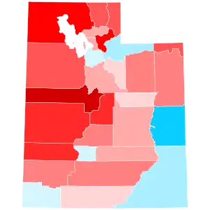 Prior to the election, all 14 news organizations projected Utah as leaning towards Trump, or a safe red state. Throughout the campaign, Trump did not exceed 60% in a single poll conducted. Some polls even showed the president leading by single digits against Biden, likely indicating a closer than normal contest in this traditionally Republican stronghold. In past elections, Utah has often given the GOP nominee one of their largest victories in the nation, having awarded George W. Bush and Mitt Romney over 70% of the vote in 2004 and 2012, respectively. However, Trump only won Utah with 58.1% of the vote and a margin of 20.5%, which although an improvement on his 18.1% margin over Hillary Clinton in 2016, is still relatively narrow compared to past Republican nominees. He performed strongly in rural areas, as well as in some larger counties like Utah (Provo), Davis (Farmington), and Weber (Ogden). Trump improved over his 45.5% plurality win in 2016, due in part to the lack of a strong third party presence, as Evan McMullin, who endorsed Biden,[4][5] earned 21.5% of the vote that year. The election was far more of a two-party contest in 2020, with third parties receiving 4.2% of the vote, compared to 27% in 2016. Despite this, the Associated Press reported a less partisan and more cooperative cultural environment in Utah compared to other states during the election.[6]
