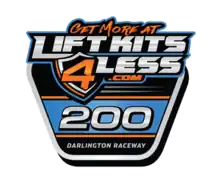 The 2021 LiftKits4Less.com 200 was the 8th stock car race of the 2021 NASCAR Camping World Truck Series season and the 8th iteration of the event. The race was brought back to the schedule as a permanent addition after fan interest, and the race was made the official throwback race for the Truck Series.[1] The race was held on May 7, 2021 in Darlington, South Carolina at Darlington Raceway, a 1.366 miles (2.198 km) egg-shaped oval permanent racetrack. The race took 147 laps to complete. After a massive crash near the end of the race took out almost all of the field,[2] Sheldon Creed of GMS Racing would win the race, garnering his 6th win of his career and his first of the season. Ben Rhodes of ThorSport Racing and Carson Hocevar of Niece Motorsports would finish the podium, finishing 2nd and 3rd, respectively.