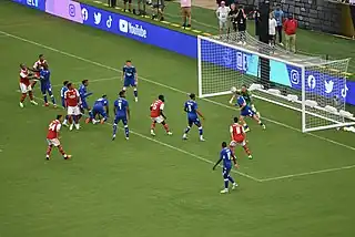 The Gunners faced fellow Premier League side Everton at M&T Bank Stadium in Baltimore, Maryland on 16 July. Gabriel Jesus and Bukayo Saka both scored one goal in the first half, helping the team win 2–0.[41] Four days later, Arsenal took on Major League Soccer side Orlando City at Exploria Stadium in Orlando, Florida. The Gunners won 3–1 with Gabriel Martinelli scoring the opener, Eddie Nketiah scoring the second, and Reiss Nelson scoring the third.[42]