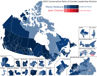 On September 10, 2022, the Conservative Party announced that Pierre Poilievre had won the election in the first round with 68% of points.[5]