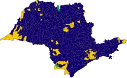 ![]() Candidate with the most votes per municipality in the 2nd round (645): Tarcísio de Freitas (566 municipalities) Fernando Haddad (79 municipalities) | ||||||||||||||||||||||||||||||||||||||||||||||||||||||||||||||||||||||||||||