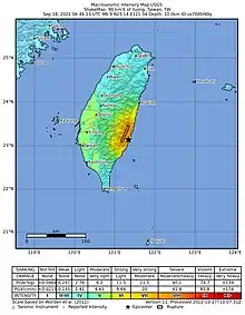 - 1 2 3 "M 6.9 - Taiwan". earthquake.usgs.gov. United States Geological Survey. Archived from the original on 2022-09-18. Retrieved 2022-09-18.