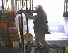![]() Surveillance camera screenshot showing Palmeter at the Dollar General entrance | |
