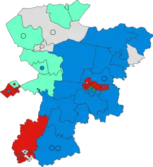 Last election 36 seats, 48.2% 5 seats, 18.3% 15 seats, 19.7%