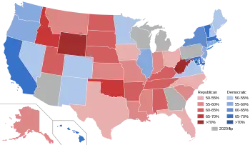 The Democratic electoral coalition, securing the "blue states" for Democratic presidential candidates, performs best among Jewish and Black voters;[40][41] whites who are wealthy or postgraduates,[42] or live in urban areas.[43] Working class voters were also a mainstay of the Democratic coalition since the days of the New Deal, but since the 1970s, many have defected to Republicans as the Democratic Party moved significantly to the left on cultural issues.[44] Conversely, the traditional Republican coalition that dominates many "red states" is mainly composed of rural white voters, evangelicals, the elderly, and non-college educated voters.[45] Republicans have also historically performed well with suburban, middle class voters since the 1950s, but this bloc has drifted away from them in recent years due to the rise of the Tea Party movement and later the Make America Great Again movement.[46] The acceleration of this trend has been credited with tipping the 2020 presidential election in favor of Democrat Joe Biden, because the incumbent Trump was historically unpopular in the suburbs for a Republican candidate, underperforming there significantly.[47]