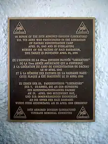 The division had no official name although it did associate itself with the nickname "Armoraiders" while in training at Camp Campbell.[1] After certification as a liberating division by the US Army Center of Military History on 28 October 1988, and the awarding of a Liberation Certificate by the United States Holocaust Memorial Council, veterans of the division adopted the name Liberators."[2]