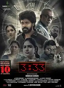 3:33 is a 2021 Indian Tamil-language psychological horror film written and directed by debutant Nambikkai Chandru and produced by Bamboo Trees Productions.[1] The film stars Sandy, Gautham Vasudev Menon and Shruthi Selvam with a supporting cast including Saravanan, Reshma Pasupuleti, Rama and Mime Gopi.[2][3] The film was released theatrically on 10 December 2021.