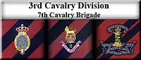 7th Cavalry Brigade was formed on 1 September 1914 at Ludgershall, Wiltshire and served with the division throughout the war. It was extensively restructured on 10 March 1918.[1]