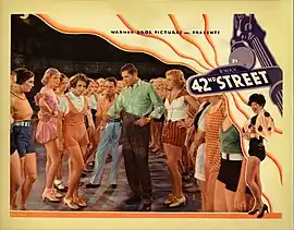 42nd Street is a 1933 American pre-Code musical film directed by Lloyd Bacon, with songs by Harry Warren (music) and Al Dubin (lyrics). The film's numbers were staged and choreographed by Busby Berkeley. It starred an ensemble cast of Warner Baxter, Bebe Daniels, George Brent, Ruby Keeler, Dick Powell, and Ginger Rogers.