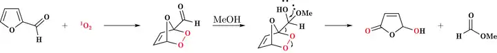 5-Hydroxy-2(5H)-furanone is a furanone derived from oxidation of furfural using singlet oxygen.[1][2] This oxidation is carried out generally in methanol or ethanol with a sensitizer like methylene blue or Rose bengal. The mechanism of this reaction is depicted as below.