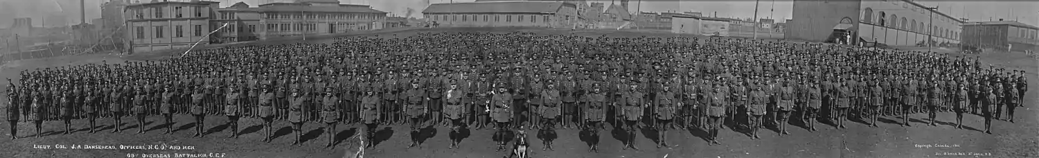 The 69th Battalion recruited throughout the province of Quebec and was mobilized at Montreal.[2]