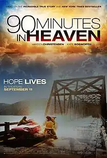 90 Minutes in Heaven is a 2015 Christian drama film directed by Michael Polish and starring Hayden Christensen, Kate Bosworth, Dwight Yoakam, Michael W. Smith, and Michael Harding. It is based on the bestselling novel by the same name. It is the first film by Giving Films, a sister company to retail chain Family Christian Stores,[5] and though the company announced plans to donate all profits from the film to charitable organizations, the poorly reviewed film showed a loss at the box office.[6]