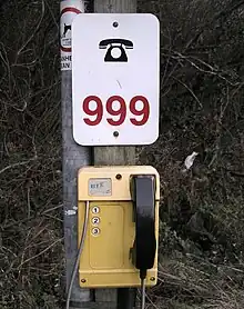 999 is an official emergency telephone number in a number of countries which allows the caller to contact emergency services for emergency assistance. Countries and territories using the number include Bahrain, Bangladesh, Botswana, Eswatini, Ghana, Guernsey, Hong Kong, the Republic of Ireland, the Isle of Man, Jersey, Kenya, Macau, Malaysia, Mauritius, Poland, Qatar, Sudan, Saudi Arabia, Singapore, Trinidad and Tobago, Seychelles, Uganda, the United Arab Emirates, the United Kingdom, and Zimbabwe.[1]