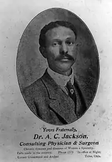 - 1 2 Krehbiel, Randy (31 May 2020). "Tulsa Race Massacre: The Murder of Dr. A.C. Jackson". Tulsa World. Retrieved 5 August 2022.
