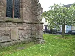 The earliest commemoration of Housman was in the chapel of Trinity College in Cambridge, where there is a memorial brass on the south wall.[44] The Latin inscription was composed by his colleague there, A. S. F. Gow, who was also the author of a biographical and bibliographical sketch published immediately following his death.[45] Translated into English, the memorial reads: